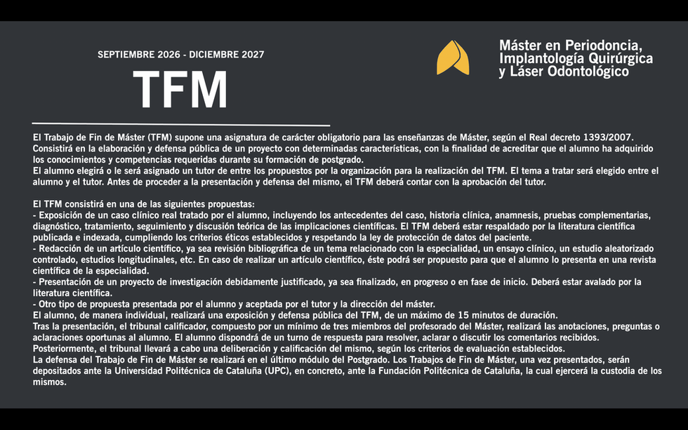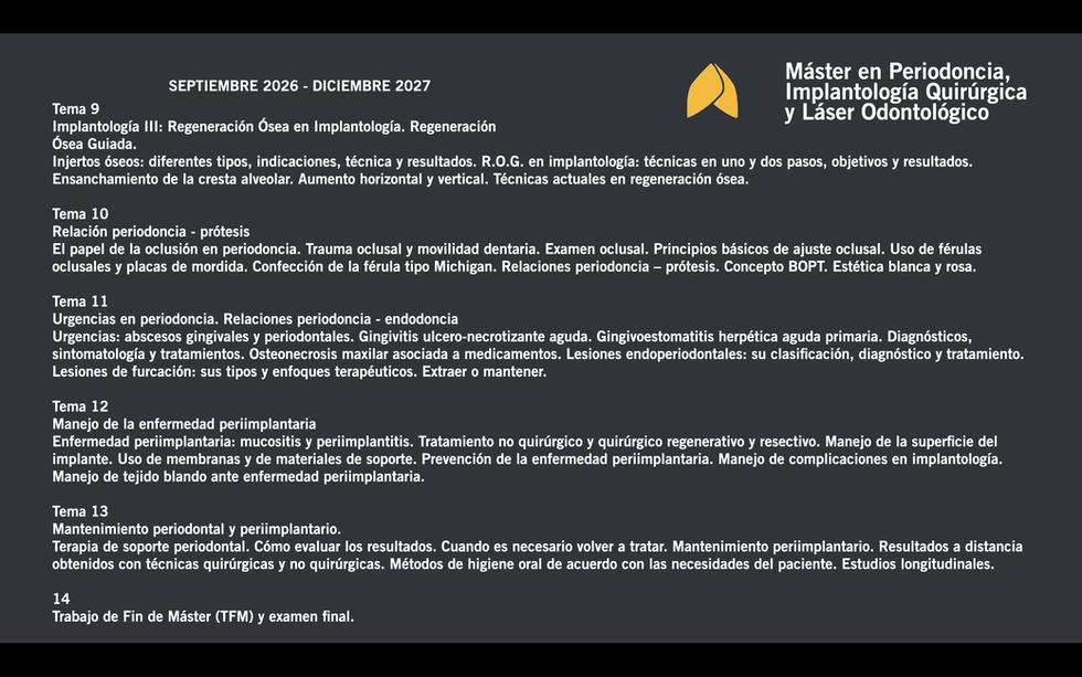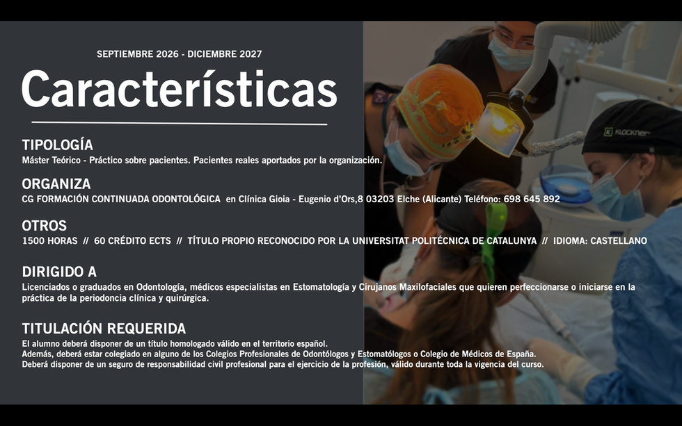 Se trata de una formación de prestigio diseñada para profesionales que buscan una especialización profunda y actualizada en periodoncia con la tecnología más avanzada.